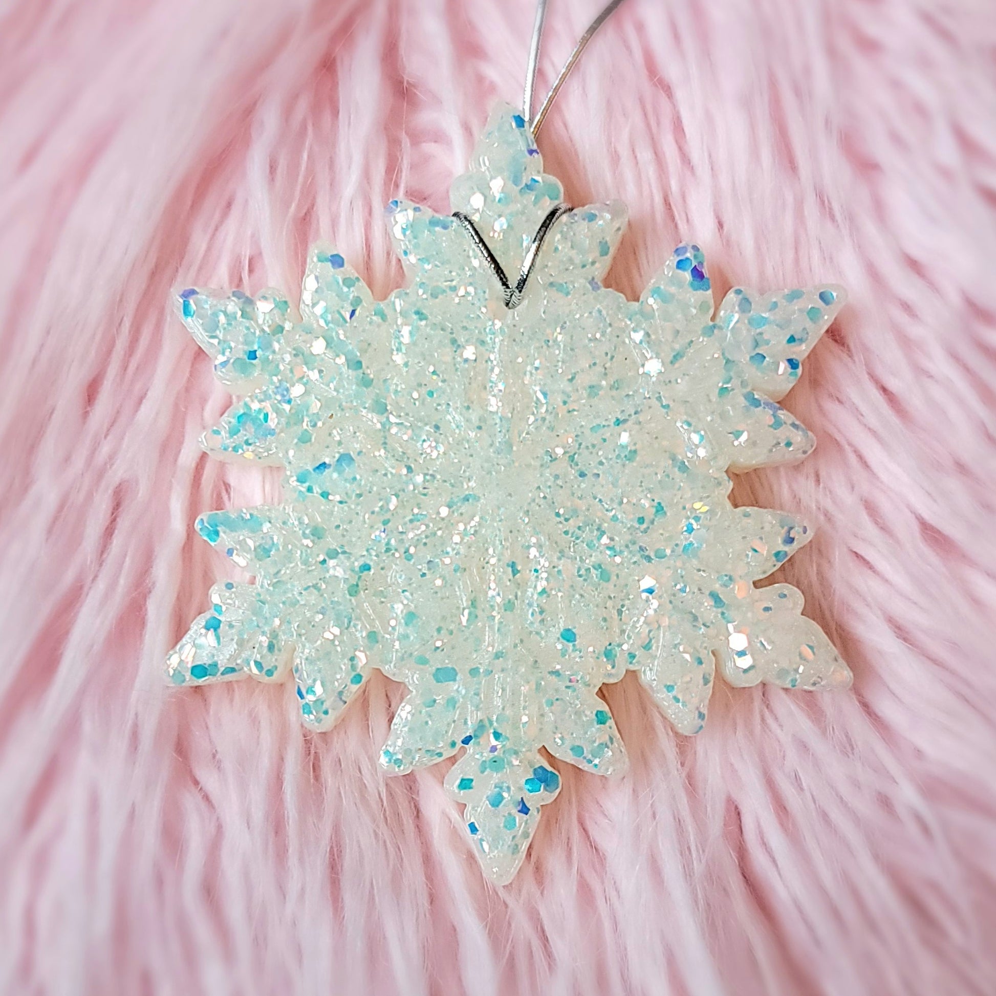 White snowflake with lots of glitter choose your favorite scent! Note freshies are handmade items, color, design and string may vary.